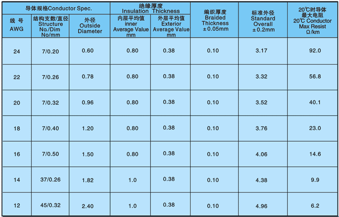 2.導體使用鍍錫、鍍鎳銅或裸銅的單支或多支絞線;